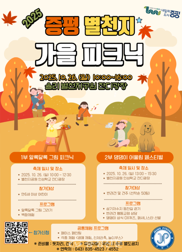 [충청신문=증평] 지홍원 기자 = 증평군이 오는 26일 증평읍 율리 별천지공원 잔디광장에서 온 가족과 반려견이 함께 즐기는 ‘증평 별천지 가을 피크닉’을 개최한다.