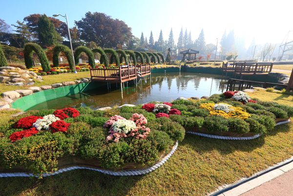 전시장 주변은 국화꽃이 수놓은 화단과 알록달록한 코스모스 포토존으로 꾸며져 관람객들은 가을의 낭만과 정취를 만끽할 수 있다.