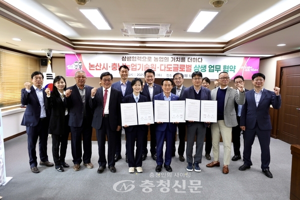 이를 위해 도 농업기술원은 이날 논산시청에서 ‘설향딸기’의 판로 확대 등을 위해 논산시·㈜다도글로벌과 상생 업무협약을 체결했다.