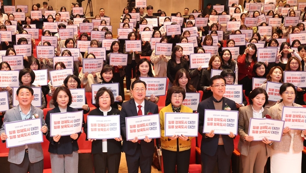 [충청신문=대전] 최일 기자 = 지난 29일 대전시청 대강당에서 ‘제29회 대전보육인대회’가 열려 이장우 시장(왼쪽 네 번째)과 조원휘 시의회 의장(오른쪽 세 번째) 등이 지역 보육인들과 기념촬영을 하고 있다. 보육인의 자긍심을 높이고 노고를 격려하기 위한 이날 행사는 대전시가 주최하고 대전어린이집연합회가 주관했다. (사진=대전시 제공)