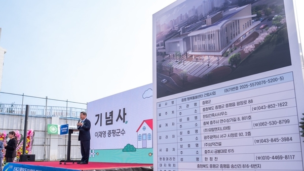 이날 행사에는 이재영 군수를 비롯해 도의원, 괴산증평교육지원청 교육장, 돌봄기관 관계자, 주민 등 100여 명이 참석해 행복돌봄센터 건립의 시작을 함께 축하했다.