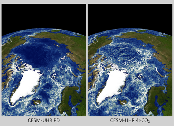 이에 연구진은 IBS 슈퍼컴퓨터 ‘알레프’와 초고해상도 기후모델(CESM-UHR)을 활용해 대기 중 이산화탄소 농도를 현재 대비 2배, 4배로 각각 높인 시나리오 실험을 수행했다.