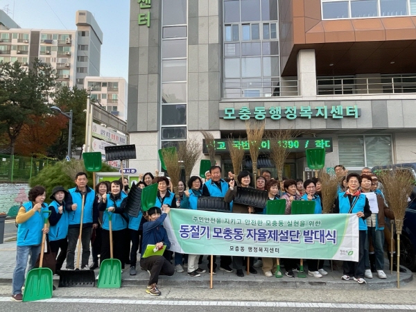 신은숙 동장을 필두로 모충동 곽대훈 담당 주무관을 비롯한 직원들과 이재호 통장협의회장(모충동 행정팀장)을 포함 임승묵 제설안전 대장, 이종남 부대장 등 50여 명의 자율제설단원들은 특히 첫눈에 대비 제설작업 준비에 만전을 기할 것을 다짐했다.