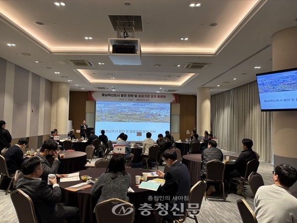 도는 지난 14일 부여 롯데리조트에서 도·시군 공공기관 유치 담당 팀장 및 관계자 60여 명이 참석한 가운데 2025년 충남혁신도시 발전 및 공공기관 유치 토론회를 가졌다.