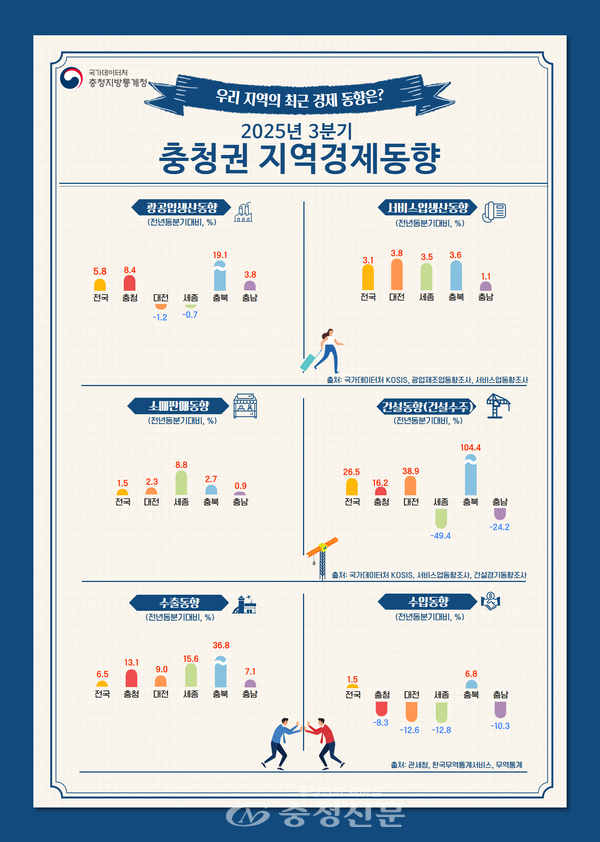 통계청 관계자는 “충청권은 전자·반도체 등 제조업 중심의 회복 흐름이 이어지면서 생산과 수출이 안정적으로 증가했다”며 “다만 지역별로 산업 구조 차이가 커 건설 경기나 특정 제조업 부진이 일부 시·도에 영향을 주고 있어 상황을 면밀히 모니터링할 필요가 있다”고 말했다.