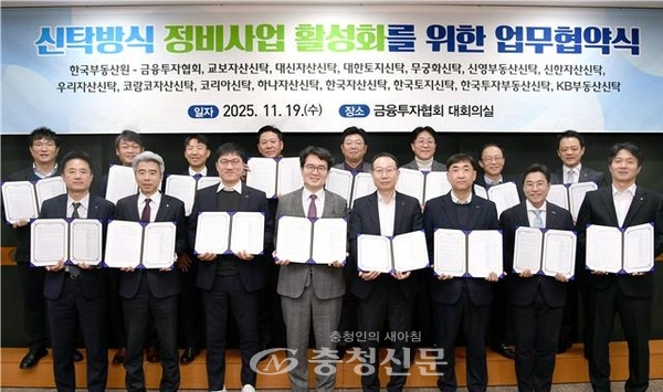 한국부동산원은 19일 금융투자협회 및 14개 신탁사와 정비사업 활성화를 위한 업무협약을 체결했다고 밝혔다.